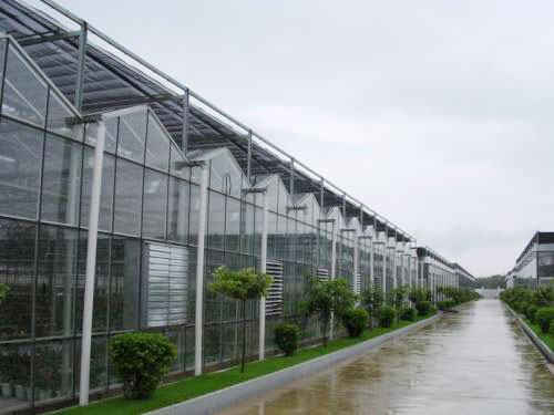 文絡溫室的骨架采用鋼架和鋁合金構成,透明覆蓋材料為4mm厚平板玻璃。溫室屋頂形狀和類型主要有多脊連棟型和單脊連棟型兩種。