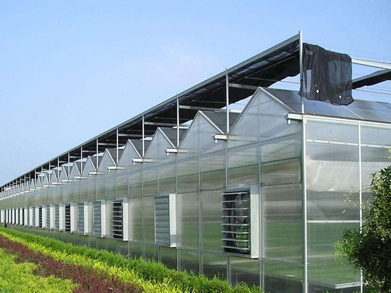 文絡(luò)溫室的骨架采用鋼架和鋁合金構(gòu)成,透明覆蓋材料為4mm厚平板玻璃。溫室屋頂形狀和類型主要有多脊連棟型和單脊連棟型兩種。